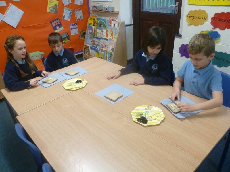 Today we followed our instructions to make a cheese and pickle sandwich. We followed our instructions very carefully and the results were great! Lots of the children tried pickle for the first time, the reviews were mixed! :-)